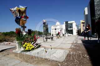 CULIACÁN, SINALOA, 02NOVIEMBRE2018.- Entre lujos, música de banda y comida, pero también entre la sencillez y la armonía, cientos de familias visitaron a sus fieles difuntos en el panteón Jardines del Humaya, durante la celebración de este Día de Muertos. El panteón Jardines del Humaya cobró fama, en un principio por albergar en sus tumbas a políticos, empresarios, agricultores y gente adinerada, pero también porque en muchas de esas grandes, lujosas y extravagantes construcciones se encuentran los restos de personajes que han cobrado fama en el mundo del narcotráfico. Allí yacen los restos de capos como Ignacio Nacho Coronel, Arturo Beltrán Leyva; familiares y sicarios que trabajaron para Joaquín El Chapo Guzmán e Ismael El Mayo Zambada, Rafael Caro Quintero o El Güero Palma, entre muchos otros. La construcción de algunas de esas lujosas y extravagantes “narcotumbas” llega a tener un valor de hasta 8 millones de pesos, según trabajadores de ese panteón, ubicado sobre la Calzada Heroico Colegio Militar, a la salida sur de la ciudad. El valor de la construcción depende de los acabados de lujo, el diseño y el tamaño de la construcción. Hay construcciones de dos y hasta tres pisos, las cuales tienen terraza, luz, aire refrigerado, algunas cuentan con recámaras, televisión, sótano, sala y hasta cocineta, además de cámaras de videovigilancia y hasta internet. Algunas tumbas cuentan vidrios blindados. Trabajadores mencionan que todos esos lujos son para los familiares que visitan las tumbas, como en este Día de Muertos. FOTO: JUAN CARLOS CRUZ /CUARTOSCURO.COM