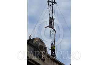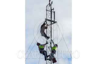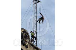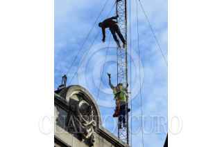 CIUDAD DE MÉXICO, 02NOVIEMBRE2018.- Un hombre de aproximadamente 30 años escaló la antena de aproximadamente 15 metros de altura que se encuentra en la azotea del Centro Joyero que se ubica en las calles de Francisco I. Madero y la esquina de Isabel La Católica en el centro de la ciudad. El hombre amenazaba con aventarse, mientras tanto equipos de emergencias ERUM y Bomberos acudieron para para convencerlo que bajara, el hombre desistió de arrogarse y fue trasladado a un hospital para su atención. FOTO: ARMANDO MONROY /CUARTOSCURO.COM