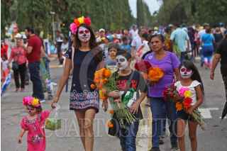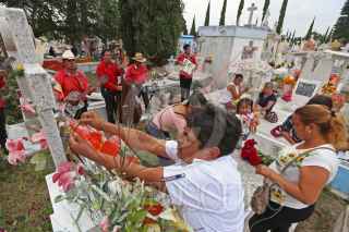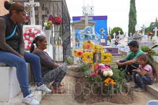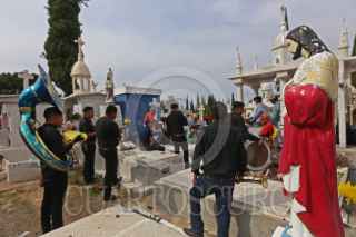 GUADALAJARA, JALISCO, 02NOVIEMBRE2018.- Miles de personas acuden a los diversos panteones de la Zona Metropolitana de la ciudad este día de muertos para visitar a sus difuntos, llevarles flores, adornar sus tumbas y hasta cantarles algunas melodías con bandas, norteños etc. FOTO: FERNANDO CARRANZA GARCIA /CUARTOSCURO.COM