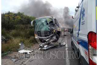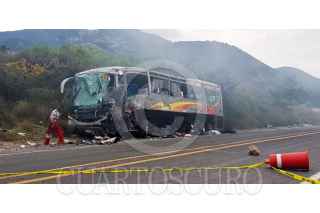 SILAO, GUANAJUATO, 03NOVIEMBRE2018.- Tres personas murieron y 20 resultaron lesionadas al chocar el camión en el que viajaban deportistas de la selección estatal de basquetbol femenil contra un tráiler sobre la carretera Silao –San Felipe; el autobús llevaba a la selección femenil de básquetbol a un torneo en San Luis Potosí. FOTO: LUIS RAMÍREZ /CUARTOSCURO.COM