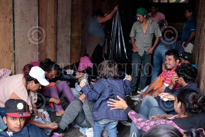 PUEBLA, PUEBLA, 04NOVIEMBRE2018.- Integrantes de la Caravana Migrante van rumbo a la CDMX en vagones de trailer sobre la autopista Puebla - México. FOTO: MIREYA NOVO /CUARTOSCURO.COM