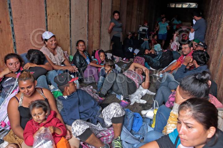 PUEBLA, PUEBLA, 04NOVIEMBRE2018.- Integrantes de la Caravana Migrante van rumbo a la CDMX en vagones de trailer sobre la autopista Puebla - México. FOTO: MIREYA NOVO /CUARTOSCURO.COM