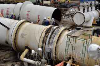 VILLA DE ALLENDE, ESTADO DE MÉXICO, 05NOVIEMBRE2018.- Personal de CONAGUA continúa los trabajos de reparación del Sistema Cutzamala después de que sufriera un desplazamiento la pieza denominada K invertida que serviría como Puente entre la línea de alta presión 1 y 2 de este sistema, y fue tomada la decisión de retirarla, en algunos lugares el abasto de agua se regularizaría hasta el sábado. FOTO: ARTEMIO GUERRA BAZ /CUARTOSCURO.COM