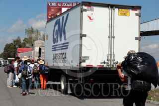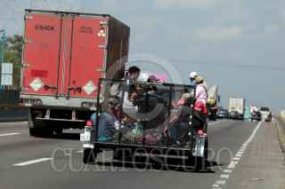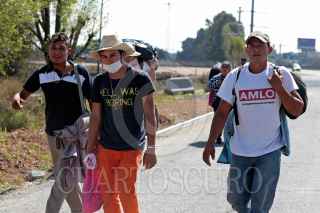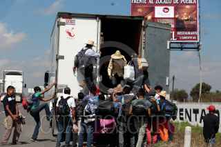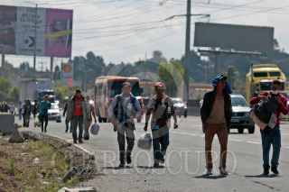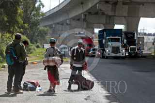 PUEBLA, PUEBLA, 05NOVIEMBRE2018.- Integrantes de la Caravana Migrante caminan sobre la autopista México - Puebla pidiendo "aventón" para llegar a la Ciudad de México. FOTO: MIREYA NOVO /CUARTOSCURO.COM