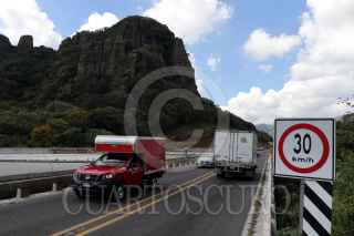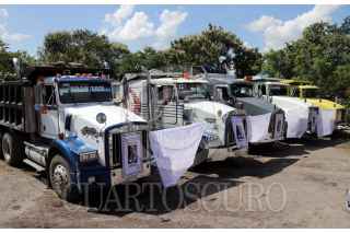 TEPOZTLAN, MORELOS, 05NOVIEMBRE2018.- Transportistas del sindicato Libertad, piden que la empresa Rubau-Ciacsa pague el servicio de acarreo que han realizado en la obra de ampliación a cuatro carriles de la autopista La Pera-Cuautla. Esta obra empezó hace más de seis años y no se puede concluir. Por años vecinos de Tepoztlán se opusieron a la obra, retrasando su construcción con amparos de la justicia federal. FOTO: MARGARITO PÉREZ RETANA /CUARTOSCURO.COM