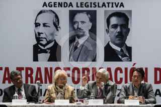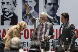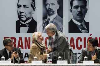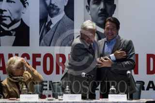 CIUDAD DE MÉXICO, 05NOVIEMBRE2018.- Andrés Manuel López Obrador, presidente electo de México; acompañado de Ricardo Monreal Ávila, Olga Sánchez Cordero y Mario Delgado, coordinadores de Morena en el Senado y Cámara de Diputados, así como la próxima secretaria de Gobernación, participaron en la presentación de la Agenda Legislativa por la 4a Transformación de Morena. FOTO: MISAEL VALTIERRA / CUARTOSCURO.COM