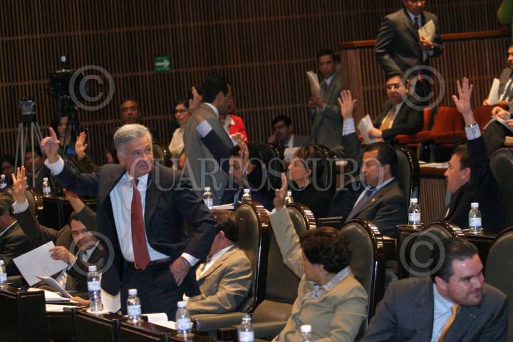 México,D.F.07ENERO2004.- Cesar Cacho, Manlio Fabio Beltrones y Emilio Gamboa conversan durante la sesión permanente del Congreso.FOTO: Nelly Salas/CUARTOSCURO.COM