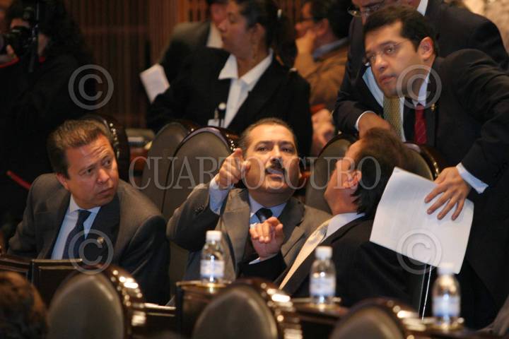 México,D.F.07ENERO2004.- Cesar Cacho, Manlio Fabio Beltrones y Emilio Gamboa conversan durante la sesión permanente del Congreso.FOTO: Nelly Salas/CUARTOSCURO.COM