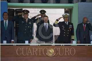 CIUDAD DE MÉXICO, 06NOVIEMBRE2018.- Se realizó la Entrega de Condecoraciones, Menciones Honoríficas y Reconocimientos al personal y unidades que se destacaron en las operaciones para reducir la violencia en el país, el evento se realizó en el Estadio de Fútbol de la Secretaría de la Defensa Nacional (Sedena) y fue encabezado por el Presidente de México, Enrique Peña Nieto, el General Salvador Cienfuegos Cepeda, secretario de la Defensa Nacional y el Almirante Vidal Francisco Soberón Sanz, secretario de Marina. FOTO: ILSE HUESCA /CUARTOSCURO.COM