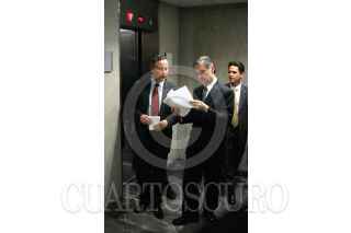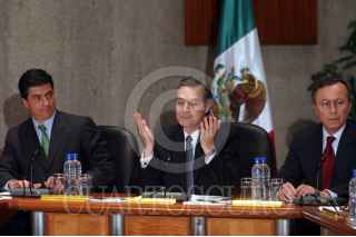 México, D.F.07ENERO2004.- Luis Ernesto Derbez, mostró su beneplácito ante la propuesta migratoria del presidente de los EE.UU, que contempla la regularización de los mexicanos que trabajan ilegalmente en suelo norteamericano. Por la mañana el presidente Vicente Fox Quesada recibió una llamada de su homológo George W. Bush, para darle las noticias. FOTO: Moisés Pablo/CUARTOSCURO.COM