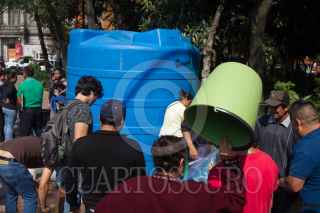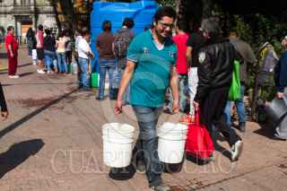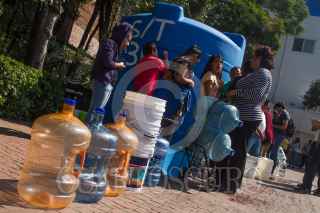 CIUDAD DE MÉXICO, 07NOVIEMBRE2018.- Ante el desabasto de agua los vecinos de la colonia Santa María la Ribera y la Tabacalera acuden a los tinacos colocados por la delegación para surtirse con cubetas, botes y tambos del vital líquido, y es que las obras del Sistema Cutzmala, el cual da agua potable a gran parte de la capital, presentó fallas en las reparaciones que se le hicieron el fin de semana pasado, por lo que el corte se ha largado una semana, Conagua anunció que hasta el sábado o domingo se restablezca el servicio al cien por ciento. FOTO: MOISÉS PABLO /CUARTOSCURO.COM