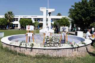 ZACATEPEC, MORELOS, 07NOVIEMBRE2018.-Una pareja se abraza durante el homenaje a los estudiantes Abraham y José Ángel que organizaron alumnos y autoridades del Tecnológico de Zacatepec. Los estudiantes fueron asesinados a tiros durante la madrugada del martes, cuando acudían a auxiliar a unos compañeros a los cuales se les poncho una llanta en una carretera vecinal. FOTO: MARGARITO PÉREZ RETANA /CUARTOSCURO.COM