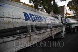 CIUDAD DE MÉXICO, 07NOVIEMBRE2018.- Pipas pertenecientes a la Delegación Benito Juárez continúan dando servicio a los vecinos de las colonias aledañas porque aún no se normaliza el abastecimiento, estas se encontraban cargando agua en el Pozo localizado en la calle Mitla. FOTO: ILSE HUESCA /CUARTOSCURO.COM
