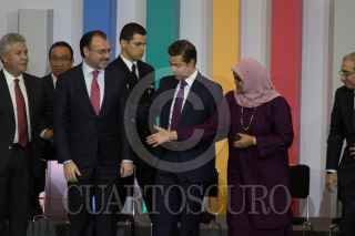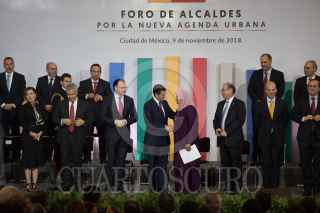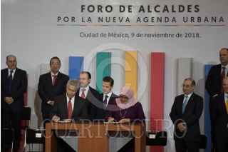 CIUDAD DE MÉXICO, 09NOVIEMBRE2018.- Se realizó el Foro de Alcaldes por la Nueva Agenda Urbana, ONU-HABITAT-Infonavit en el Centro CitiBanamex encabezado por el presidente de México Enrique Peña Nieto, el secretario de Relaciones Exteriores Luis Videgaray Caso, la secretaria de Desarrollo Agrario, Territorial y Urbano Rosario Robles Berlanga, el director general del Instituto del Fondo Nacional de la Vivienda para los Trabajadores (Infonavit) David Penchyna Grub y la directora ejecutiva de ONU-HABITAT Maimunah Mohd Sharif siendo estos dos últimos quienes firmaron un Memorándum Compromiso del Estado de Refrendar Alianzas. FOTO: ILSE HUESCA /CUARTOSCURO.COM