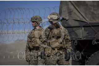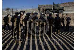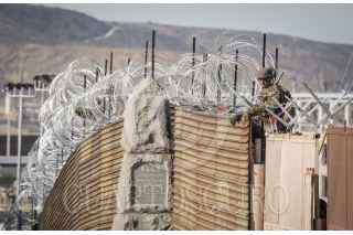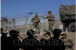 TIJUANA, BAJA CALIFORNIA, 10NOVIEMBRE2018.- Tropas militares enviadas por el gobierno de Donald Trump para proteger la frontera con México, trabajan en la instalación de alambre de púas sobre el muro fronterizo. Esto como resultado de la política antimigrante de este país y de la reciente caravana migrante que viene desde Centroamérica y que ha ingresado a México con el objetivo de pedir asilo político en el país estadounidense. FOTO: OMAR MARTÍNEZ /CUARTOSCURO.COM