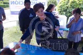 CIUDAD DE MÉXICO, 11NOVIEMBRE2018.- Cecilia Romero, presidenta de la Comisión Organizadora Nacional del PAN; emitió su voto en la casilla, ubicada en el Parque de la Bombilla donde se encuentra un monumento a Manuel J. Clouthier, la panista señaló que esperan que cerca de las 21 horas ya haya un resultado de la elección para dirigir el Partido Acción Nacional, que se disputan Marko Cortés y Manuel Gómez Morín. FOTO: MOISÉS PABLO /CUARTOSCURO.COM