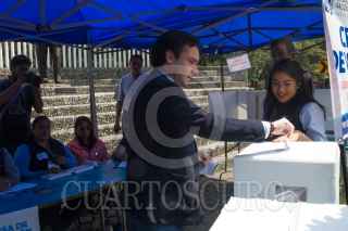 CIUDAD DE MÉXICO, 11NOVIEMBRE2018.- Fernando Rodríguez Doval, secretario general del PAN, emitió su voto en la casilla, ubicada en el Parque de la Bombilla donde se encuentra un monumento a Manuel J. Clouthier, hoy los panistas elegirán a su nuevo dirigente, cargo que se disputan Marko Cortés y Manuel Gómez Morín. FOTO: MOISÉS PABLO /CUARTOSCURO.COM