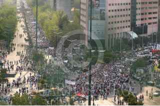 México D.F. 10 Marzo 2004.- En las avenidas Reforma y Juárez se juntaron las dos marchan que partieron del ángel de la independencia y monumento de la revolución, para dar inicio la Segunda Jornada Nacional por la Soberanía, donde obreros y campesinos exigieron su derecho a participar en los proyectos políticos. FOTO: Germán Romero/CUARTOSCURO.COM