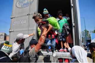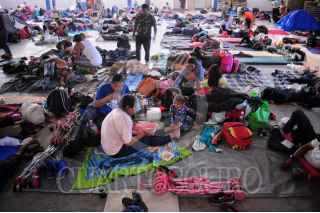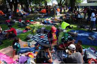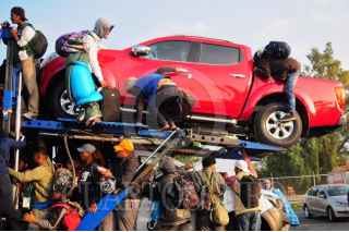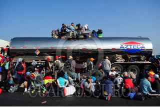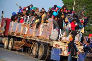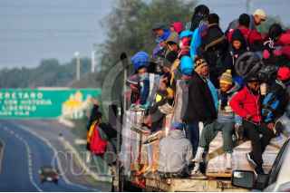 IRAPUATO, GUANAJUATO, 11NOVIEMBRE2018.- Miles de migrantes continúan la caravana hacia el norte del país. Esta madrugada salieron de Querétaro caminando y subiéndose a los trailers para llegar al albergue ubicado en el DIF de Irapuato, mañana partirán hacia Guadalajara. FOTO: DIEGO SIMÓN SÁNCHEZ /CUARTOSCURO.COM