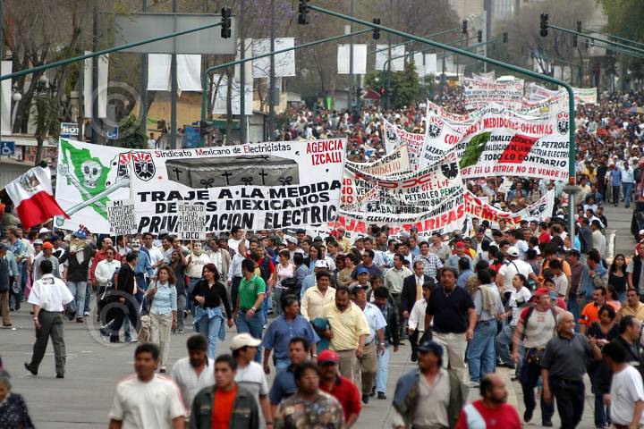 México D.F. 10 Marzo 2004.- Pobladores de Atenco sacaron sus machetes durante el mitin que realizo en el zocalo capitalino. Sindicatos rechazan los proyectos privatizadores del gobierno federal. FOTO: Germán Romero/CUARTOSCURO.COM