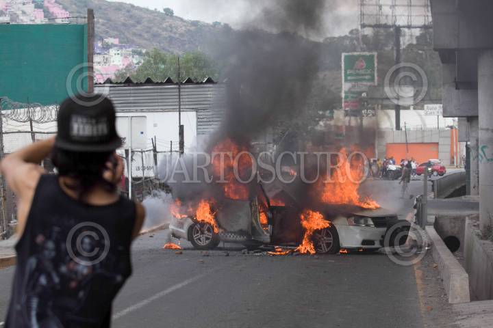 SAN JUAN IXHUATEPEC, ESTADO DE MÉXICO, 12NOVIEMBRE2018.- Ayer en la media noche policías capitalinos ingresaron a las calles de San Juanico en donde golpearon a varios vecinos e ingresaron a varios domicilios, así lo reportaron lugareños, como respuesta bloquearon desde esas horas la autopista México-Pachuca, lo que aha generado gran caos vial. La Secretaría de Seguridad Pública de la Ciudad informó hoy por la mañana que sus elementos persiguieron y detuvieron a varios sujetos que pocos minutos habían asaltado a un automovilista. Tras el bloqueo un grupo de desconocidos saqueo un un centro comercial de la zona, pero los vecinos recuperaron los artículos y los regresaron en varios carritos. Vecinos exigieron una explicación a las acciones policiales capitalinas, varias patrullas y llantas han sido quemadas. FOTO: GALO CAÑAS /CUARTOSCURO.COM