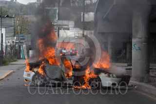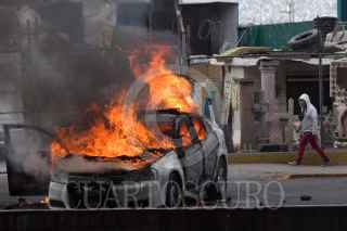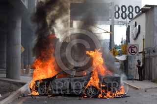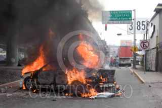 SAN JUAN IXHUATEPEC, ESTADO DE MÉXICO, 12NOVIEMBRE2018.- Ayer en la media noche policías capitalinos ingresaron a las calles de San Juanico en donde golpearon a varios vecinos e ingresaron a varios domicilios, así lo reportaron lugareños, como respuesta bloquearon desde esas horas la autopista México-Pachuca, lo que aha generado gran caos vial. La Secretaría de Seguridad Pública de la Ciudad informó hoy por la mañana que sus elementos persiguieron y detuvieron a varios sujetos que pocos minutos habían asaltado a un automovilista. Tras el bloqueo un grupo de desconocidos saqueo un un centro comercial de la zona, pero los vecinos recuperaron los artículos y los regresaron en varios carritos. Vecinos exigieron una explicación a las acciones policiales capitalinas, varias patrullas y llantas han sido quemadas. FOTO: GALO CAÑAS /CUARTOSCURO.COM