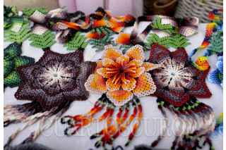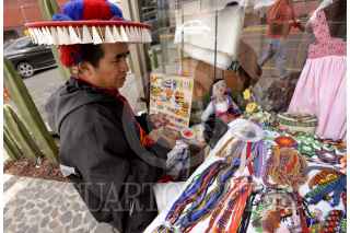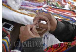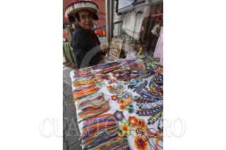 TOLUCA, ESTADO DE MÉXICO, 12NOVIEMBRE2018.- Julio García, indígena Huichol originario de Jalisco elabora pulseras, aretes, collares, llaveros elaborados de cuentas de chaquira, con gran paciencia hace diferentes figuras coloridas, que vende en las calles de la ciudad de Toluca, su familia se dedica por completo a esto y salen a vender a diversos estados de la República Mexicana. FOTO: ARTEMIO GUERRA BAZ /CUARTOSCURO.COM