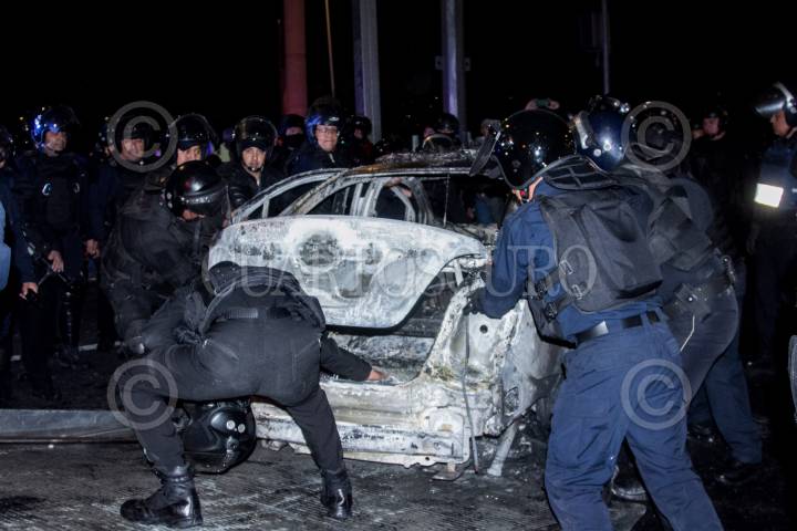 CIUDAD DE MÉXICO, 12NOVIEMBRE2018.- Cientos de elementos de la policía federal y capitalina retomaron la circulación de la carretera México-Pachuca a la altura del kilómetro 10 tras más de 20 horas bloqueada. Esto debido a que manifestantes del poblado de San Juanico cerraran desde la madrugada por la irrupción de elementos de la Secretaría de Seguridad Pública, quienes golperaron y agredieron a los pobladores. FOTO: ARMANDO MONROY /CUARTOSCURO.COM