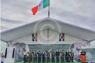 TORREÓN, COAHUILA, 13NOVIEMBRE2018.- Salvador Cienfuegos Zepeda, Secretario de la Defensa Nacional, acompañado por Miguel Ángel Riquelme Solís, Gobernador del estado de Coahuila, encabezó la inauguración del Hospital Militar Regional el cual contará con 40 camas para hospitalización, así como con un área para medicina física y rehabilitación, un auditorio, una subestación eléctrica, un almacén de medicamentos y alojamientos para recibir pacientes residentes y foráneos. FOTO: SEDENA /CUARTOSCURO.COM