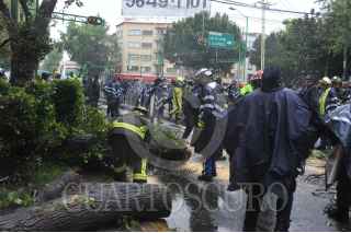 CIUDAD DE MÉXICO, 14NOVIEMBRE2018.- Policías bomberos y rescatistas de Protección Civil, realizaron una fuerte movilización debido a la caída de un árbol sobre cuatro vehículos en Eje Central y avenida Obrero Mundial. Los servicios de emergencias reportaron que no hubo lesionados. FOTO: ARMANDO MONROY / CUARTOSCURO.COM