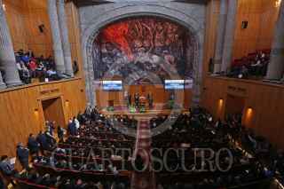 GUADALAJARA, JALISCO, 15NOVIEMBRE2018.- Hoy en el Paraninfo Enrique Díaz de León de la Universidad de Guadalajara (UdeG), se llevo a cabo un homenaje de cuerpo presente al escritor Mexicano Premio Cervantes, Fernando del Paso. FOTO: FERNANDO CARRANZA GARCIA /CUARTOSCURO.COM