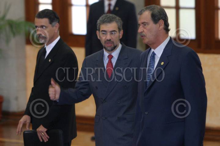 México D.F. 12 MARZO 2004.- El presidente Vicente Fox se despidie de elos secretarios que asistieron a la sesión intersecretarial. FOTO: Sandra Perdomo/CUARTOSCURO.COM