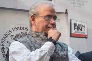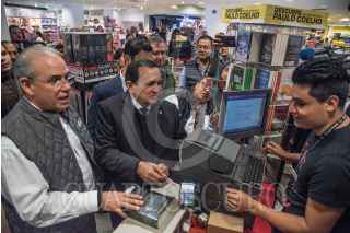 CIUDAD DE MÉXICO, 16NOVIEMBRE2018.- Rogelio Cerda Pérez, Procurador Federal del Consumidor, y José Manuel López Campos, presidente de Concanaco Servytur, encabezaron esta mañana el arranque del Buen Fin 2018 en la Plaza Comercial parque Delta. En la imagen, los funcionarios, realizaron una compra de un libro. FOTO: MARIO JASSO /CUARTOSCURO.COM