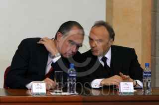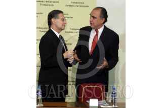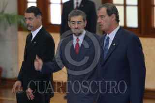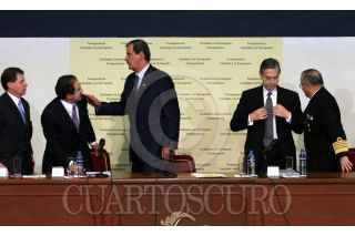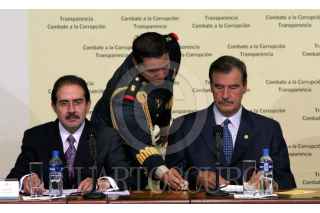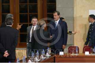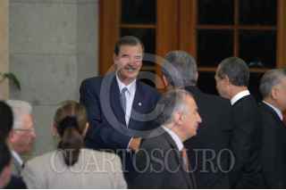 México D.F. 12 MARZO 2004.- El presidente Vicente Fox se despidie de elos secretarios que asistieron a la sesión intersecretarial. FOTO: Sandra Perdomo/CUARTOSCURO.COM