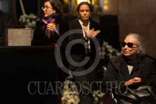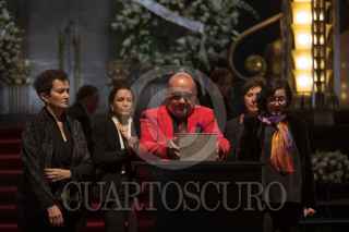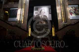CIUDAD DE MÉXICO, 16NOVIEMBRE2018.- Se rindió homenaje al escritor mexicano Fernando del Paso en Bellas Artes por parte de familiares, amigos y autoridades del sector cultural, entre aplausos su viuda Socorro e hijos Alejandro y Paulina montaron la primera guardia de honor acompañados de la secretaria de Cultura María Cristina García Cepeda y la titular del Instituto Nacional de Bellas Artes (INBA) Lidia Camacho. FOTO: ILSE HUESCA /CUARTOSCURO.COM