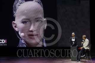PUEBLA, PUEBLA, 17NOVIEMBRE2018.- El segundo día de la Ciudad de las Ideas 2018 "The Burning Questions", contó con la participación del fotoperiodista Jimmy Nelson y Sophia, el robot humano más avanzado de Hanson Robotics, Campeona de Innovación por el Programa de las Naciones Unidas para el Desarrollo (PNUD). FOTO: MIREYA NOVO /CUARTOSCURO.COM