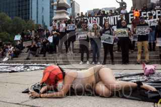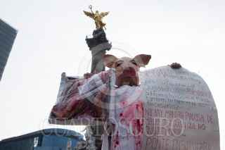 CIUDAD DE MÉXICO, 18NOVIEMBRE2018.- Decenas de personas en pro de la libertad animal marcharon del Ángel de la Independencia al Palacio de Bellas Artes. Los activistas se dieron cita en las escalinatas del monumento, donde realizaron un perfomance para concientizar sobre el maltrato animal, así como la violencia que padecen los animales. FOTO: GALO CAÑAS /CUARTOSCURO.COM