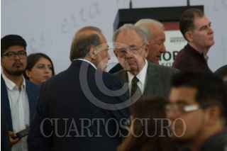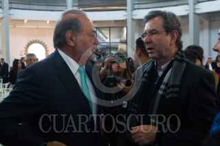 CIUDAD DE MÉXICO, 19NOVIEMBRE2018.- El ingeniero Carlos Slim Helú conversa con Beatriz Gutiérrez Müller, esposa del Presidente Electo Andrés Manuel López Obrador, y la futura secretaria de Cultura, Alejandra Frausto, al finalizar la presentación del proyecto "Memoria Histórica y Cultural de México", misma que será presidida de forma honoraria por Gutiérrez Müller. La ceremonia se realizó en el Archivo General de la Nación. FOTO: MOISÉS PABLO /CUARTOSCURO.COM