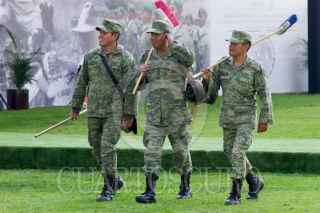 CIUDAD DE MÉXICO, 20NOVIEMBRE2018.- Soldados de la Marina rompen filas al finalizar la ceremonia del 108 aniversario de la Revolución Mexicana, realizado en Campo Marte. FOTO: MOISÉS PABLO /CUARTOSCURO.COM