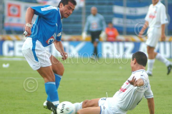 México, D.F. 13 MARZO2004.- César "Chelito" Delgado anotó el primer gol de Cruz Azul en el partido disputado en el estadio azul ante Querétaro donde el marcador final fue de 2 goles a cero favor los celestes. FOTO: Iván Stephens/CUARTOSCURO.COM