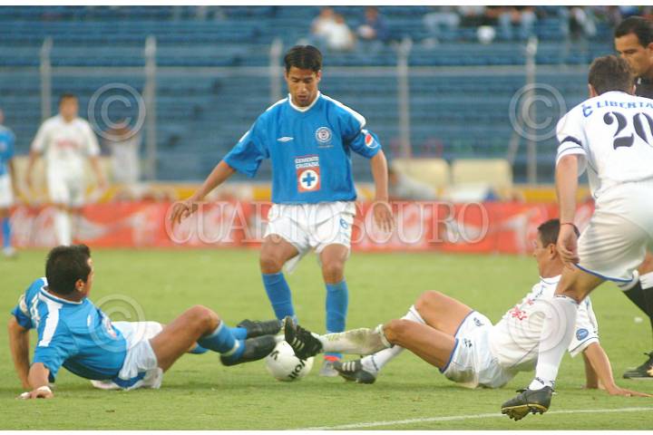 México, D.F. 13 MARZO2004.- César "Chelito" Delgado anotó el primer gol de Cruz Azul en el partido disputado en el estadio azul ante Querétaro donde el marcador final fue de 2 goles a cero favor los celestes. FOTO: Iván Stephens/CUARTOSCURO.COM