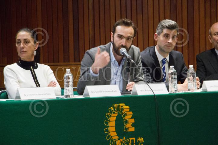 CIUDAD DE MÉXICO, 20NOVIEMBRE2018.- Claudia Sheinbaum, jefa de Gobierno Electa, encabezó la presentación del Plan de Movilidad para la Ciudad, que se realizo en la Unidad Interdisciplinaria de UPIICSA del Instituto Politécnico Nacional. Andres Lajous, el encargado de la presentación. FOTO: VICTORIA VALTIERRA /CUARTOSCURO.COM
