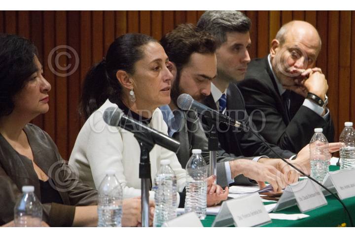 CIUDAD DE MÉXICO, 20NOVIEMBRE2018.- Claudia Sheinbaum, jefa de Gobierno Electa, encabezó la presentación del Plan de Movilidad para la Ciudad, que se realizo en la Unidad Interdisciplinaria de UPIICSA del Instituto Politécnico Nacional. Andres Lajous, el encargado de la presentación. FOTO: VICTORIA VALTIERRA /CUARTOSCURO.COM
