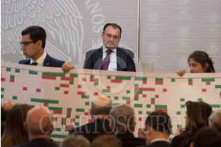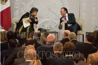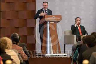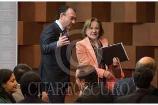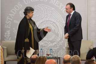CIUDAD DE MÉXICO, 21NOVIEMBRE2018.- Luis Videgaray, secretario de Relaciones Exteriores, y Ana María Cetto, investigadora del Instituto de Ciencias de la UNAM, durante la ceremonia de inauguración del Foro sobre Desarrollo Sostenible Ante el Cambio Tecnológico Acelerado, y sobre su inclusión en la Agenda 2030 para el Desarrollo Sostenible. FOTO: MARIO JASSO /CUARTOSCURO.COM