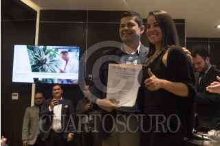 CIUDAD DE MÉXICO, 21NOVIEMBRE2018.- Julio Sánchez y Tépoz, director de la Comisión Federal para la Protección con Riesgos Sanitarios (Cofepris) anunció la liberación de 38 productos con contenidos de cannabis, de los cuales 21 son suplementos alimenticios, nueve cosméticos, seis alimentos y dos materia prima. La Cofepris entregó los permisos correspondientes a las diversas empresas que comenzarán a comercializarlos en breve, estos productos cumplen con la norma de superar el 1% de THC, además de que se podrán adquirir sin receta médica. En la imagen los propietarios de la empresa de CBD Science muestran el bálsamo de aceite de cáñamo que pretenden comercializar. FOTO: MOISÉS PABLO /CUARTOSCURO.COM