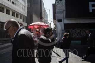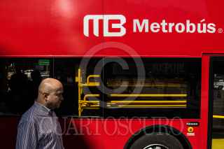 CIUDAD DE MÉXICO, 21NOVIEMBRE2018.- Una persona camina al momento de que en el fondo se proyecta un camión del metrobús sobre avenida Paseo de la Reforma. FOTO: MISAEL VALTIERRA /CUARTOSCURO.COM