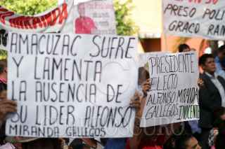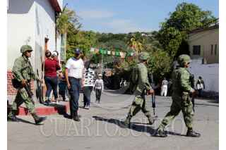 AMACUZAC, MORELOS, 21NOVIEMBRE2018.- Unos niños vestidos de chínelos bailan mientras se espera la llegada del gobernador, Cuauhtémoc Blanco Bravo, quien continuó este día su gira de agradecimiento por los municipios. Aquí, vecinos se manifestaron con pancartas y mantas a favor de la liberación de Alfonso Miranda Gallegos, presidente municipal electo y tío de Santiago Mazarí “El Carrete”, presunto líder en Morelos de la organización delincuencial Los Rojos. Miranda Gallegos fue detenido por la Policía Federal el pasado 6 de mayo, y estando preso ganó la elección a la alcaldía. Militares cuidaron el evento en esta zona limítrofe con el estado de Guerrero y que registra un alto índice de violencia. FOTO: MARGARITO PÉREZ RETANA/ CUARTOSCURO.COM