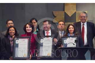 CIUDAD DE MÉXICO, 22NOVIEMBRE2018.- El jefe de Gobierno de la Ciudad y Tanya Muller Secretaria de Ambiente, encezaron la ceremonia de la emisión del Bono Verde de la Ciudad de México, esto en el piso de remates de la Bolsa Mexicana de Valores. FOTO: VICTORIA VALTIERRA / CUARTOSCURO.COM