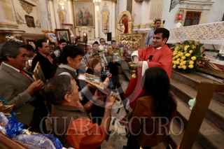 TOLUCA, ESTADO DE MÉXICO, 22NOVIEMBRE2018.- Músicos de Toluca acudieron a la iglesia de la Merced para festejar a Santa Cecilia, patrona de los músicos, a quien le cantaron las mañanitas con marimba y llevaron sus imágenes a bendecir y pedir un año lleno de trabajo. FOTO/ ARTEMIO GUERRA BAZ /CUARTOSCURO.COM