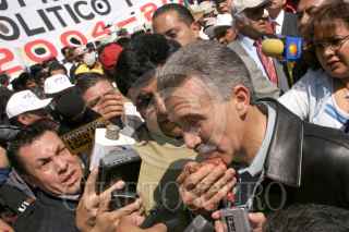 México, D.F. 14 MARZO 2004.- Roberto Madrazo, presidente nacional del PRI es abordado por simpatizantes del partido y periodistas en el Monumento a la Revolución. FOTO: Sandra Perdomo/CUARTOSCURO.COM